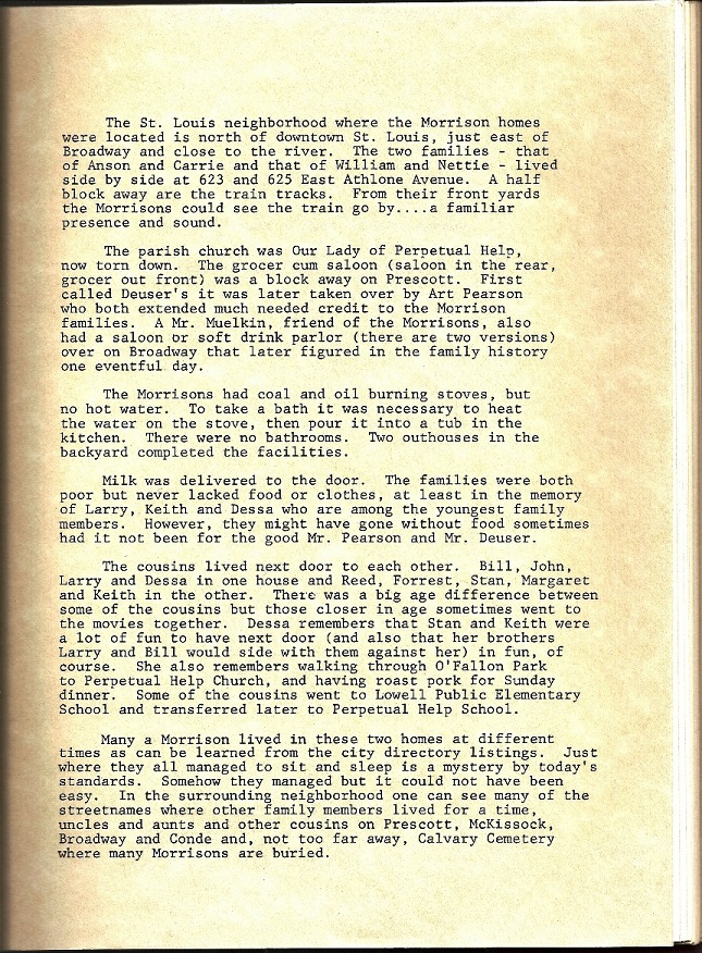 The Morrison Family: Research by Carolyn Sharp offers legal document copies, Athlone Avenue Memories, and the St. Louis Directories.