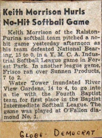 One of Dad's legends was his no-hit softball game while working at Purina.
