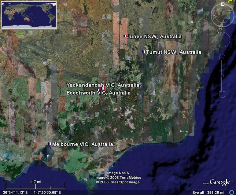 Reed was likely a relation of Charlotte Reed Morrison, his wife. Possibly Woodbridge Brown Reed, who was about John Keith's age. John Keith was in Melbourne when he landed and was still there a few years later. He was in Beechworth in 1855, about 200 miles northeast of Melbourne, where he held a job as a boss in a sawmill. There he was brought into court to pay a worker some disputed wages. They found dead letters to John Keith in Yackandandah just slightly north of there in 1858. Letters likely from Charlotte his wife.