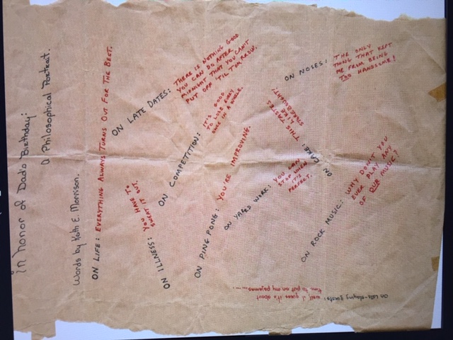 Keith was known for his little wisdoms. On one of his birthdays, Mary (Tom's wife) penned many of them on this parchment for our enjoyment.