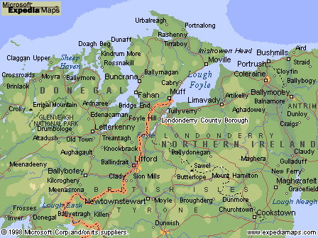 Londonderry is a county of Northern Ireland that lies between Lough Neagh and the Atlantic northern coast of Ireland. Londonderry is also the name given to the county's chief town which is both a city and a port on the River Foyle.