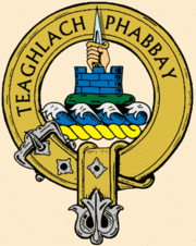 The war cry of the Clan are "Dun Uisdean" (Hugh's Castle), and Teaglach Phabbay (Family of Pabbay).