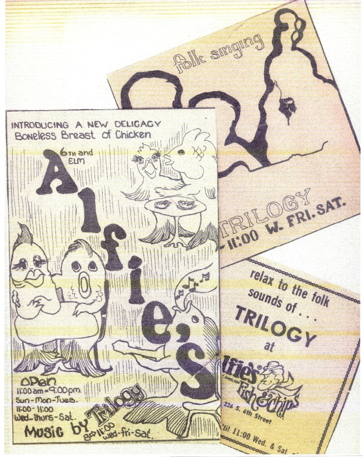 The corner of Alfie's. We brought in the fraternity, which got the beer running. Three hours a night for three days a week. The Group took in $30, which was a nice $10 a piece for having fun. Beat flippin' burgers.